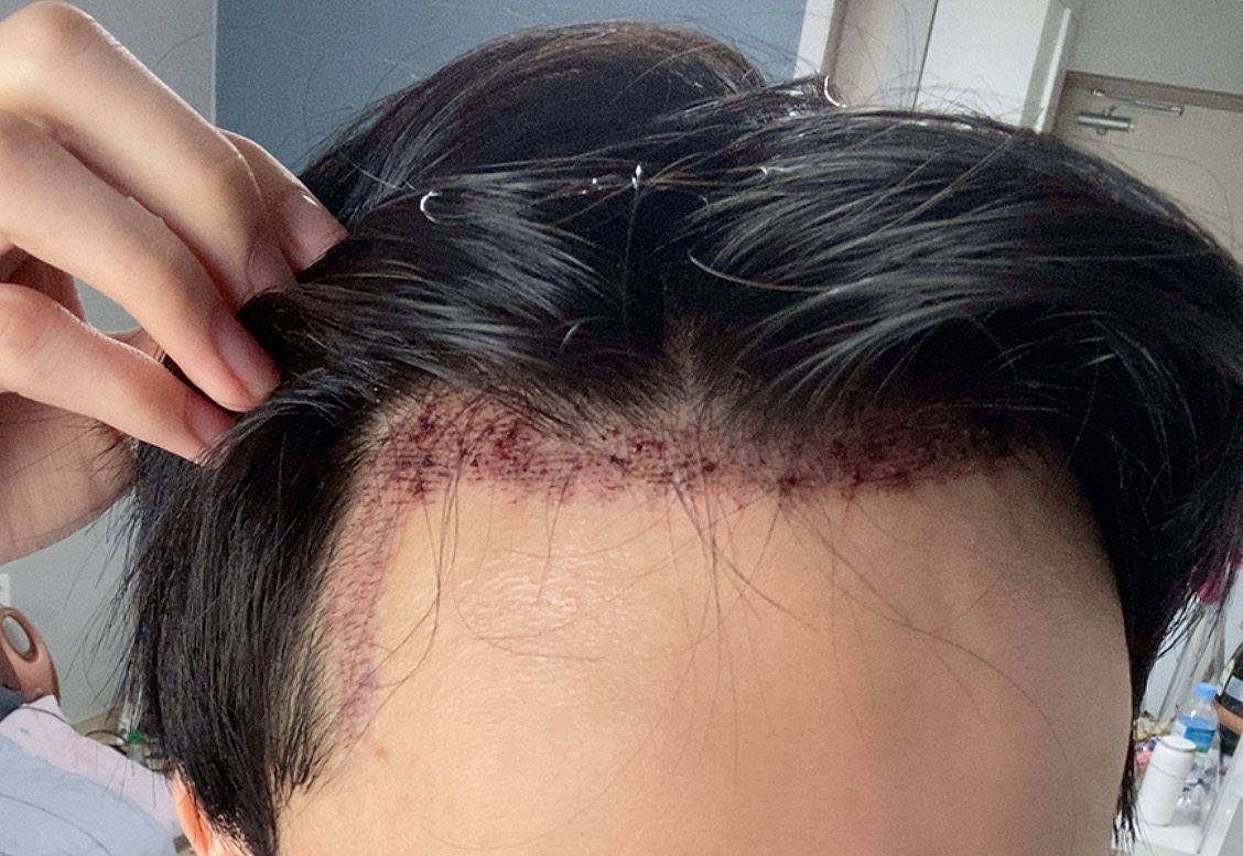 하지만 딱히 고통은 없었습니다 샴푸 후 드디어 처음으로 제 모발이식 상태를 보게 되었어요